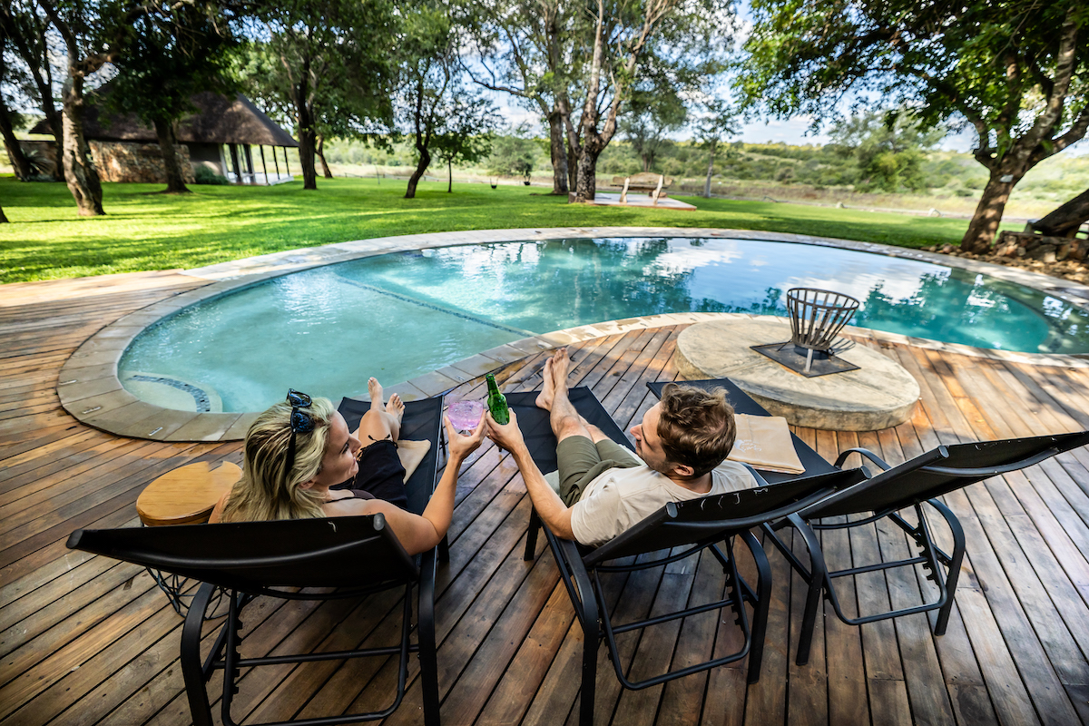 For a more adventurous experience, guests can spend a night in the elevated Sleep-Out Hide, a rustic wooden hide overlooking a waterhole where two guests can safely sleep out in the bush beneath the stars, surrounded by the sounds of the African wilderness.